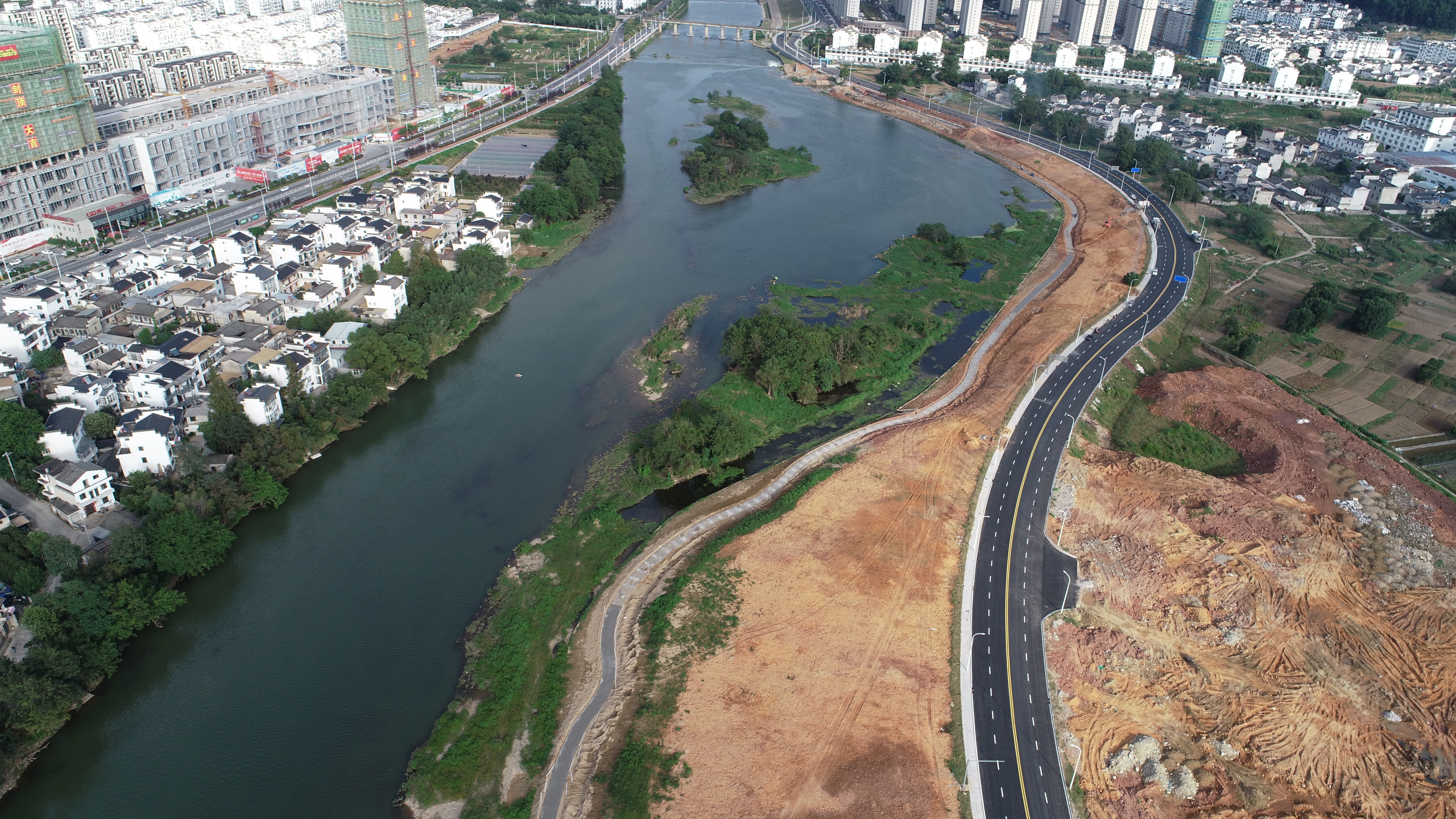 歙县丰乐河南岸景观工程位于歙县潭渡渡老桥至黄潭源安置区沿河,建设总面积约43110平方米,工程初步设计内容包括绿化、硬质铺装、停车位、景观桥、景观构筑物、水利驳岸、景观照明排水附属设施等,全长约1065米。