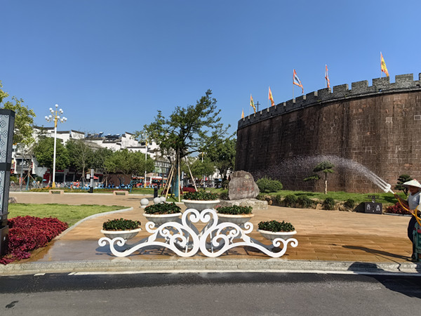 国庆将至,歙县大街小巷一片庄严喜庆、文明和谐、重热烈的社会氛围。目前,逸宁公司在徽州古城、王茂荫公园、歙县游泳馆、经一路等主要公园景区道路节点已经全部更换时令花卉,逸宁公司以推广应用的新优特色草花为主,主要有一串红、彩叶草、牵牛花、孔雀草等,同时在设计方面注重色系搭配,花色选择方面以红色等明快的颜色为主。
