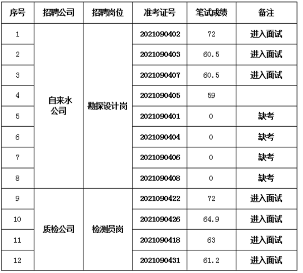 根据《黄山徽投集团招聘员工考试公告》,笔试工作已于2021年9月4日上午结束,现将笔试成绩及进入面试人员名单公布如下: